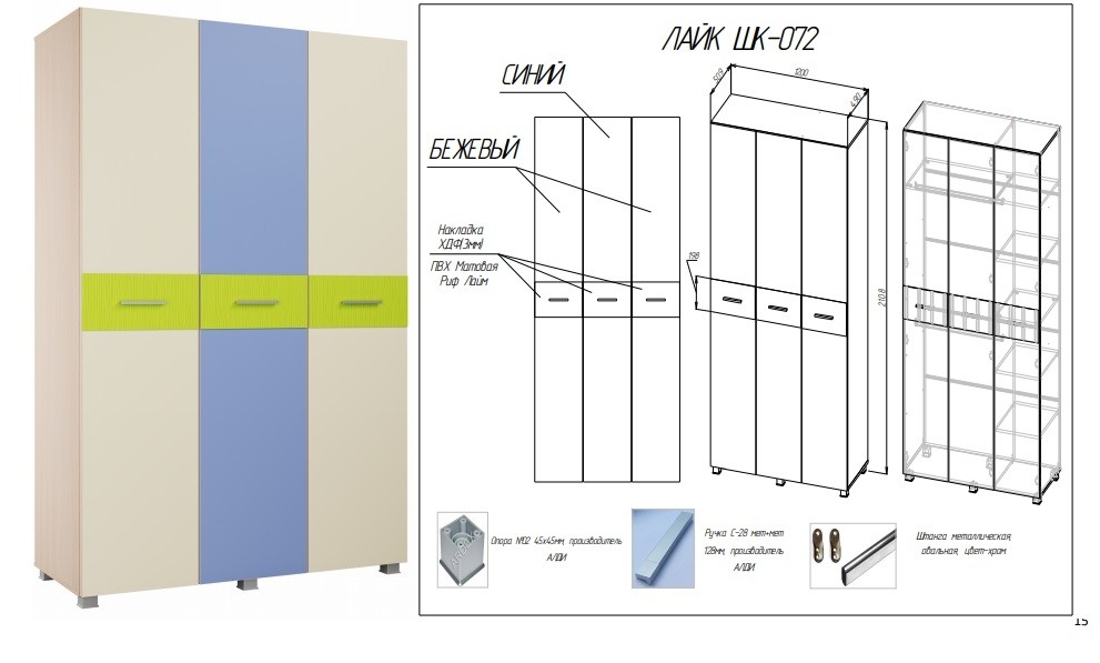 - Материал: ЛДСП 16мм/МДФ 10мм/Накладки на фасадах выполненные из ХДФ толщиной 3мм облицованного пленкой ПВХ Матовая Риф Лайм.