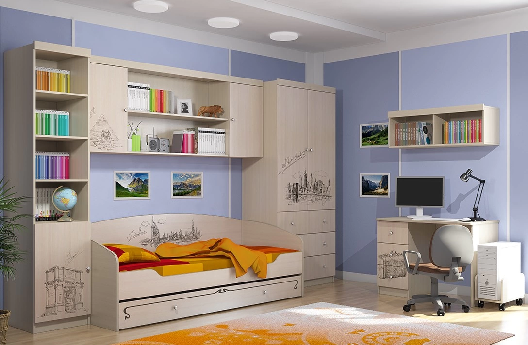 - Общие Габариты Детской (по стене): Ширина 3382 мм х Глубина 832 мм x Высота 2090 мм