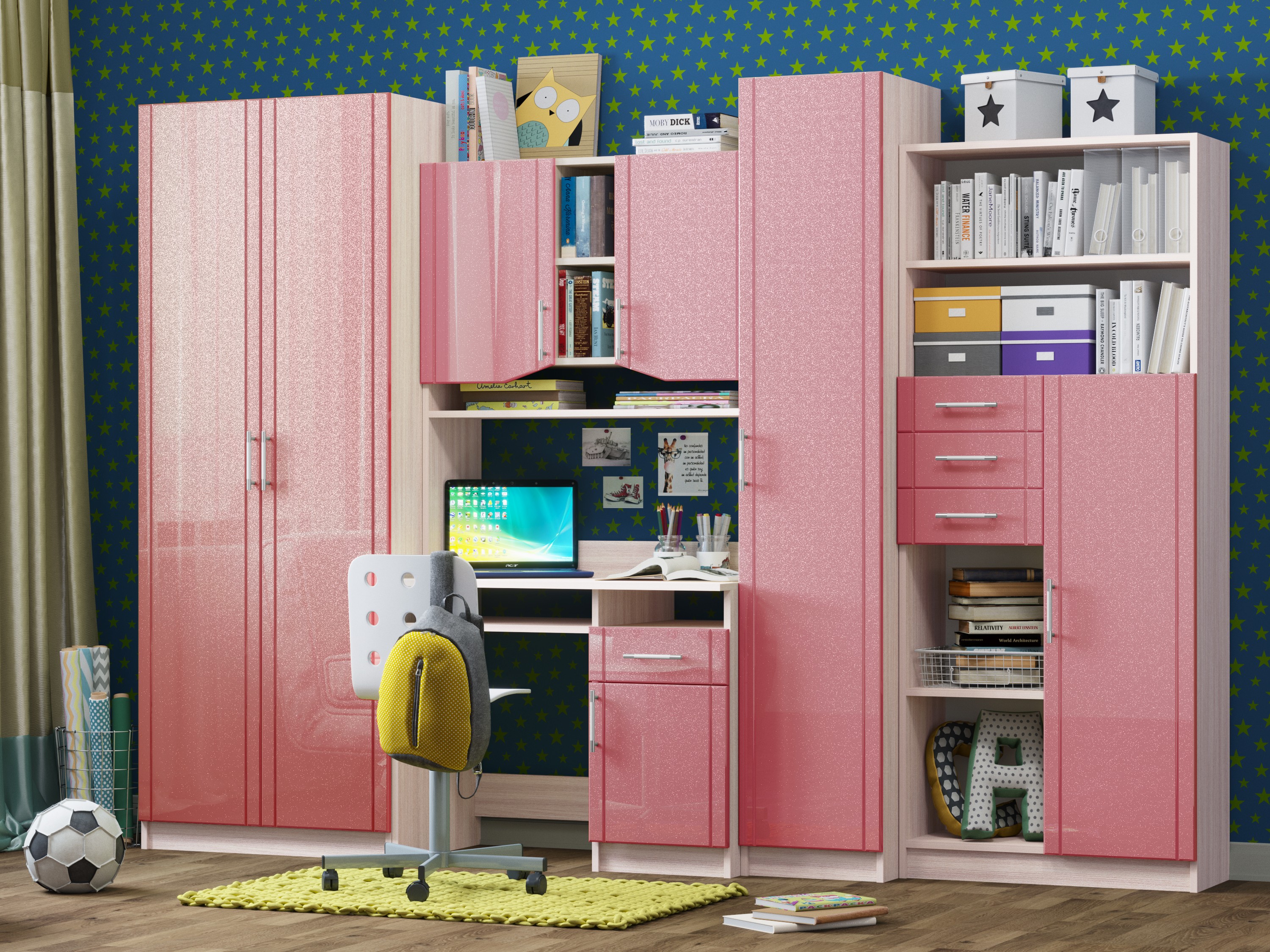 Детская Юниор МДФ – практичный и экономный вариант. Подойдет, как и для подростка, так и для маленьких хозяев комнаты. Вместительные отделения шкафа и большое количество ящиков помогут поддерживать порядок в комнате. Внутри шкаф оснащен штангой для плечиков и огромным количеством полок, что позволит поместить большое количество одежды.